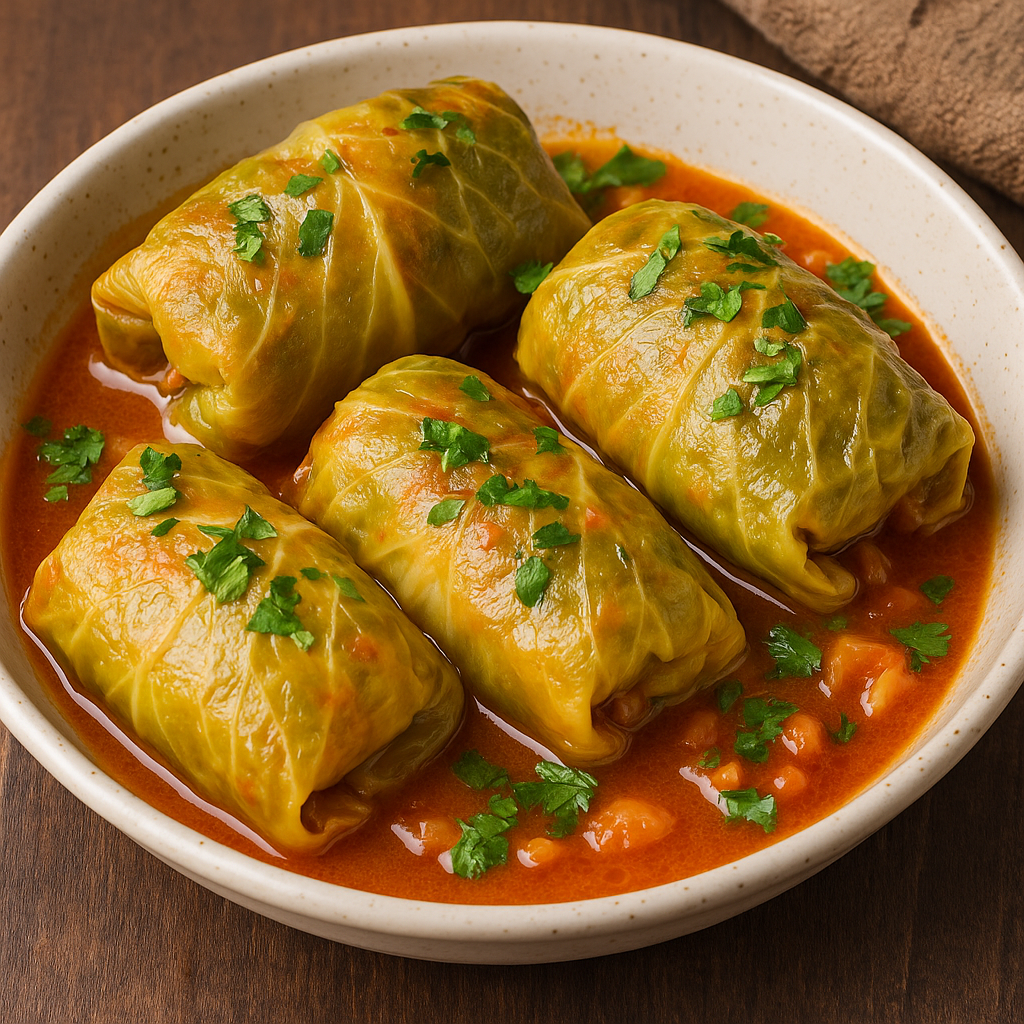 Golubtsy, Rus ve Doğu Avrupa mutfağının en sevilen klasik yemeklerinden biridir. 🇷🇺✨ Bizim mutfağımızdaki lahana dolmasına benzer, fakat özel sosu ve pişirme tekniğiyle farklı bir lezzet sunar. Et, pirinç ve baharatlarla hazırlanan iç harç, yumuşacık lahana yapraklarına sarılır ve domates sosuyla fırında pişirilir.