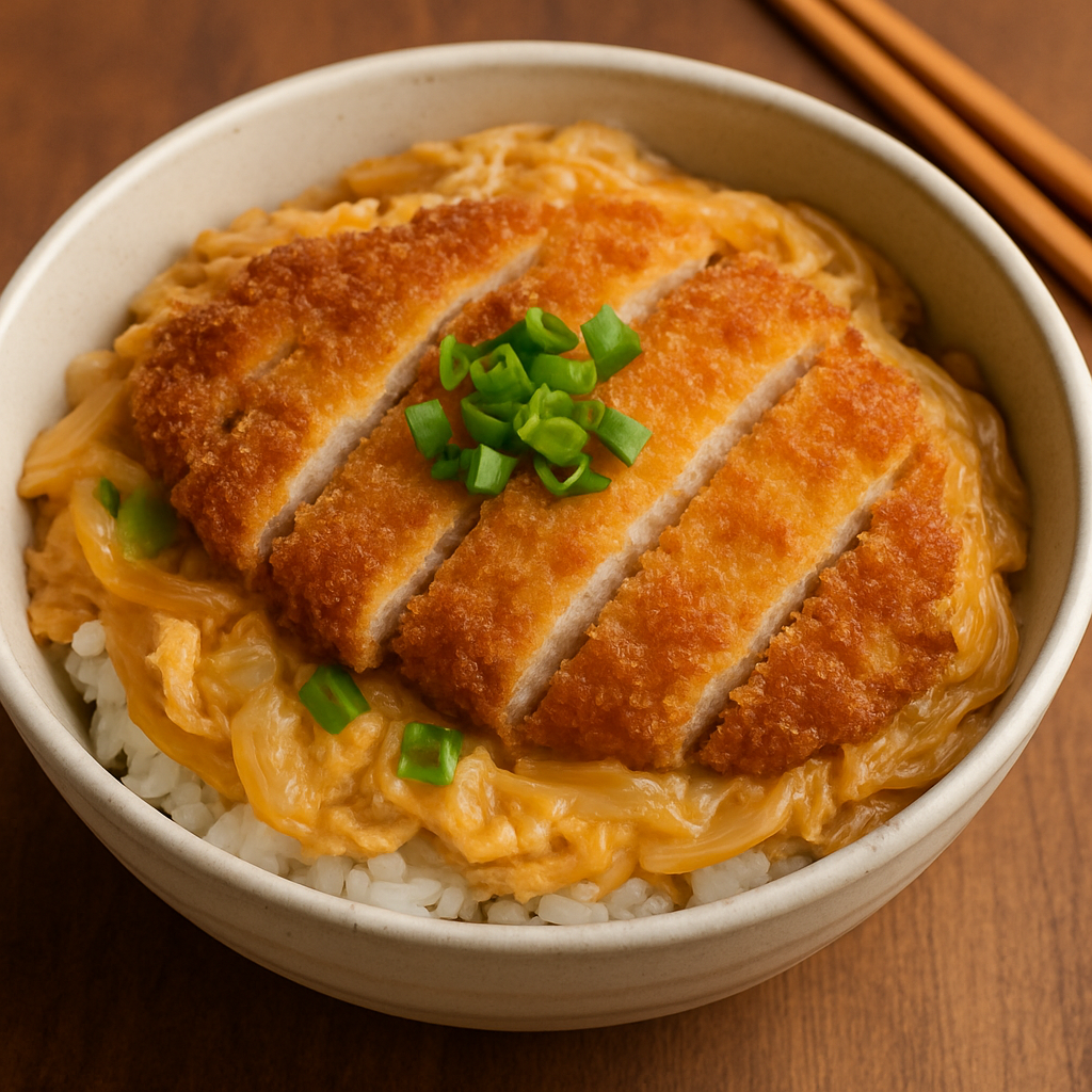 Japon mutfağının hem klasik hem de ev yapımı lezzetlerinden biridir. Çıtır tonkatsu dilimlerinin yumurtayla pişirilip sıcak pirinç üzerinde servis edilmesiyle hazırlanır. Hem doyurucu hem de rahatlatıcı bu tabak, Japon halkı için özellikle öğrenciler arasında sınav öncesi şans getirmesiyle de bilinir.