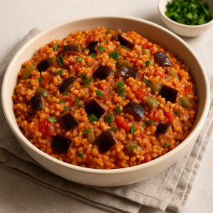 Anadolu mutfağının mütevazı ama bir o kadar da doyurucu yemeklerinden biri olan Bulgurlu Patlıcan,sebze ve tahılın kusursuz uyumunu sofraya taşır.Hem vegan, hem ekonomik, hem de besin değeri yüksek bir yemektir….